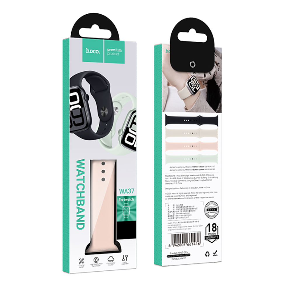 Watchband Hoco WA37 38/40/41/42mm Fluorine Rubber Strap για Apple Watch series 1/2/3/4/5/6/7/8/9/SE/SE2 Ροζ