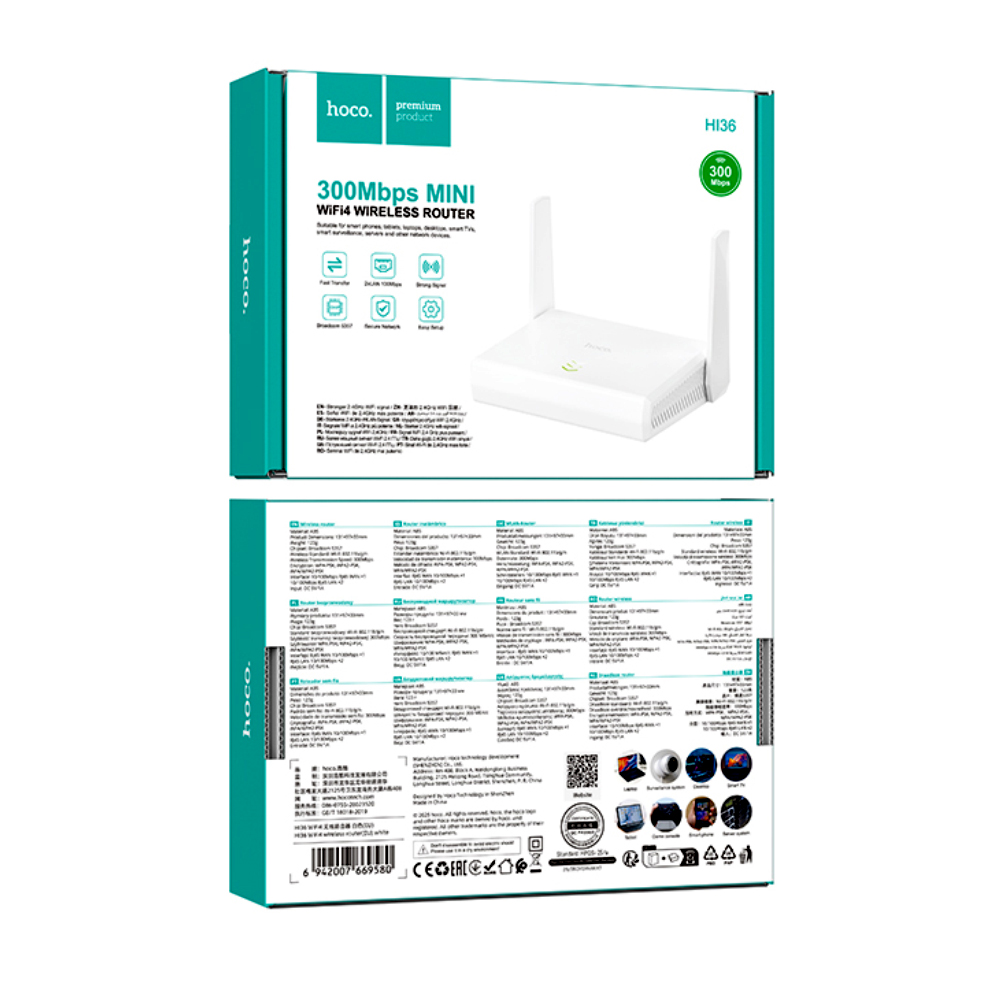 Wifi Router Mini Hoco HI36 Wifi4 300Mbps 2.4GHz 2x5dBi Λευκό